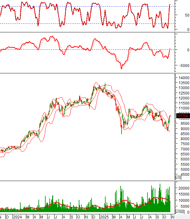 Chỉ báo MACD tiếp tục tăng và đã cho tín hiệu mua trở lại nên tình hình khá tích cực trong ngắn hạn.