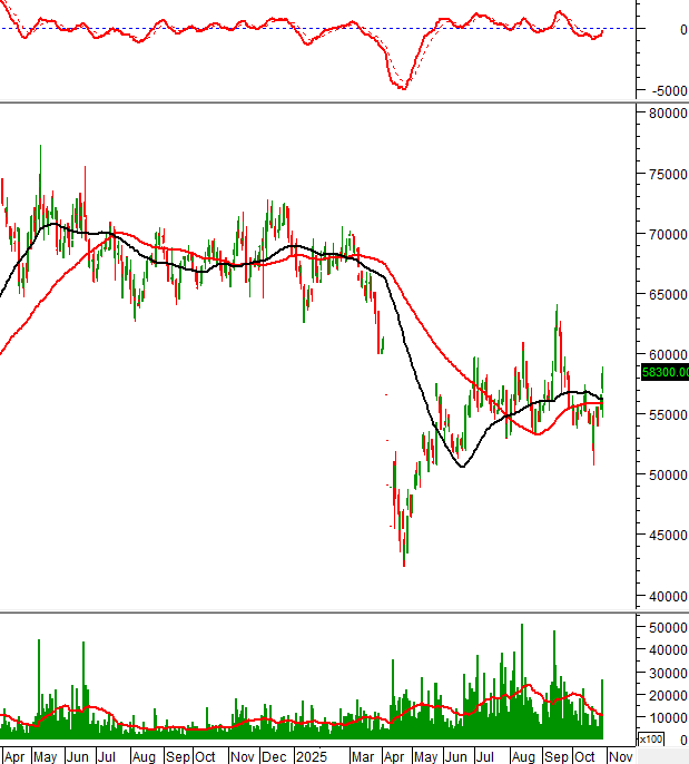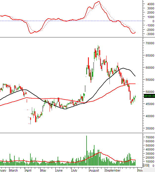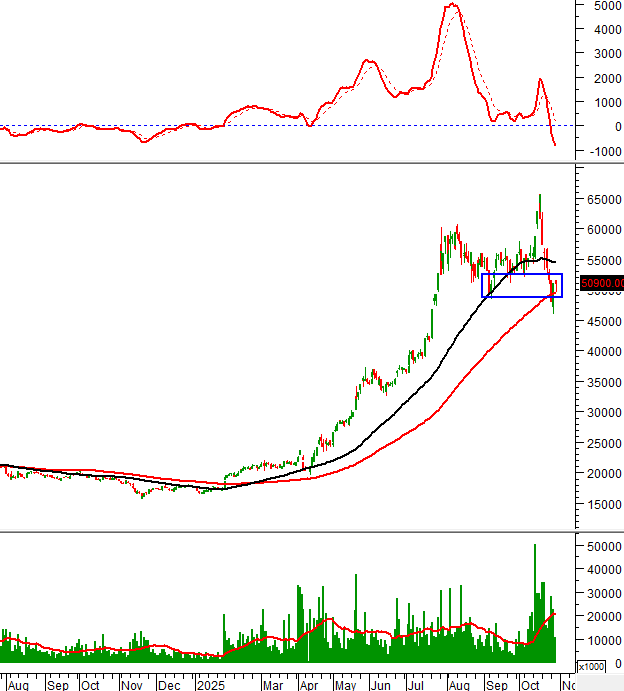 Hỗ trợ trong thời gian tới là đáy cũ tháng 04/2025 (tương đương vùng 36,500-42,500). Tuy nhiên, nhà đầu tư có thể mua sớm trong trường hợp MACD cho tín hiệu mua trở lại.
