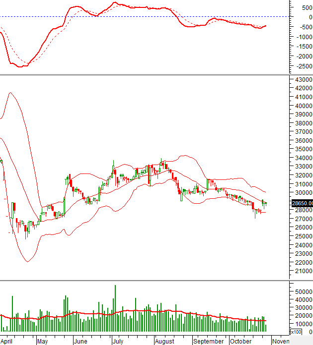 Chỉ báo MACD cho tín hiệu bán trở lại, tiếp tục đi xuống và phá vỡ ngưỡng 0 nên quá trình rung lắc dự kiến sẽ còn tiếp tục.