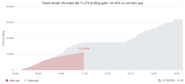 Giá trị giao dịch trên sàn HOSE giảm hơn 35% so với phiên sáng hôm qua, đạt hơn 11 ngàn tỷ đồng. Tương tự, thanh khoản trên sàn HNX cũng giảm gần 29%, đạt 772 tỷ đồng.