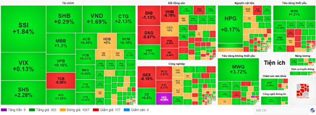 Nhóm chứng khoán, có 4 mã ảnh hưởng khá lớn đến chỉ số VN-Index là SSI tăng 1.96%, VND tăng 1.69%, VCI tăng 1.03%, HCM tăng 0.36%… Bên cạnh đó thì nhóm cổ phiếu ngân hàng với sự góp mặt của CTG tăng 2.33%, MBB tăng 1.3%, ACB tăng 0.95%, STB tăng 0.85%…