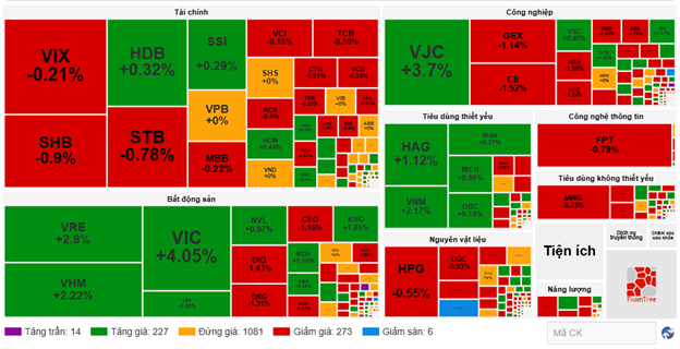 Tương tự, nhóm bất động sản cũng được dẫn dắt tốt bởi NVL, VIC, VHM, VRE, KHG, KSF, SJS,…