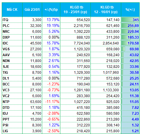 Top 20 mã có thanh khoản tăng/giảm cao nhất sàn HNX