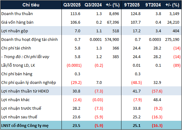 Theo báo cáo tài chính quý 3/2025, CTCP Thép Nam Kim (mã NKG) đạt 3.773 tỷ đồng doanh thu, giảm 27% so với cùng kỳ năm ngoái (YoY). Lợi nhuận gộp đạt 180 tỷ đồng, tương ứng biên lợi nhuận gộp đạt 4,8%, co hẹp so với con số 8,7% của quý 3/2024.