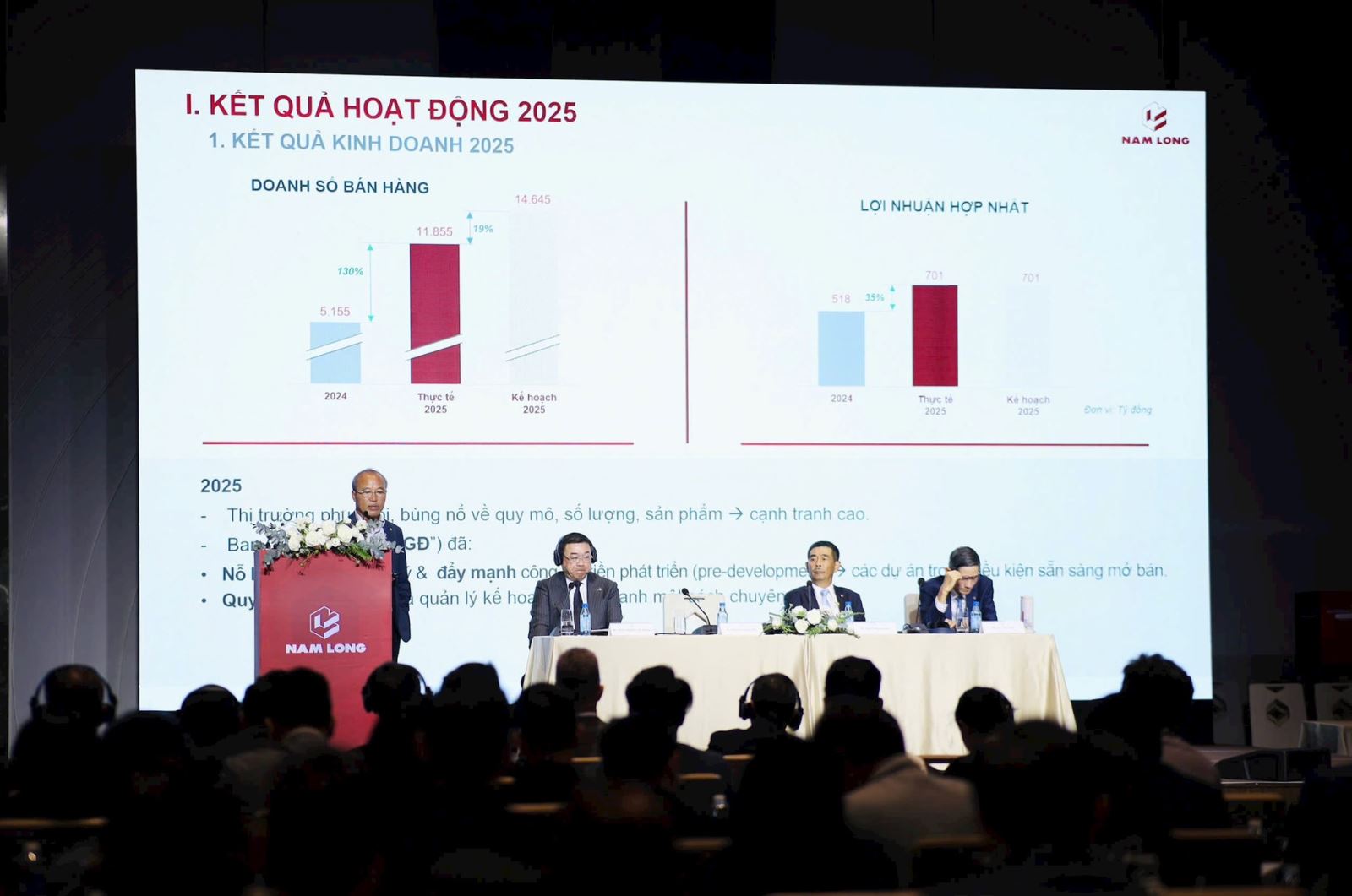 Sáng ngày 25/04/2026 tại TP.HCM, Đại hội đồng cổ đông thường niên Nam Long (NLG) đã thông qua mục tiêu doanh thu kỷ lục hơn 7.600 tỷ đồng. Tại đây, ban lãnh đạo cũng giải đáp chi tiết về chiến lược khơi thông rổ hàng trị giá hàng tỷ USD.