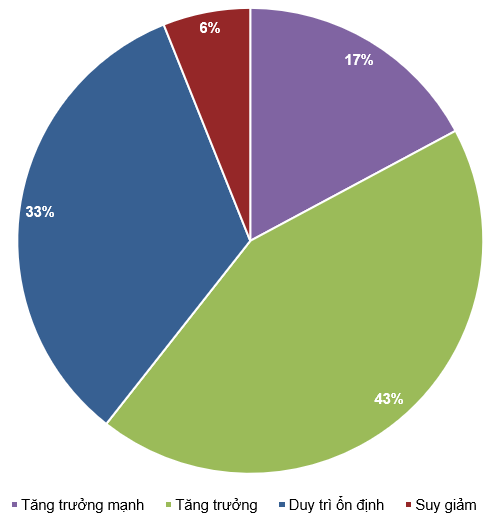 Về triển vọng thị trường trong quý 4/2025, có 60% môi giới tin rằng thị trường sẽ tiếp tục tăng trưởng, trong đó 17% kỳ vọng tăng trưởng mạnh và chỉ có 6% bày tỏ lo ngại về khả năng suy giảm.