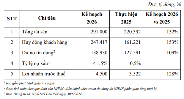 Lợi nhuận trước thuế mục tiêu đạt 4,500 tỷ đồng, tăng 28% so với kết quả năm 2025.