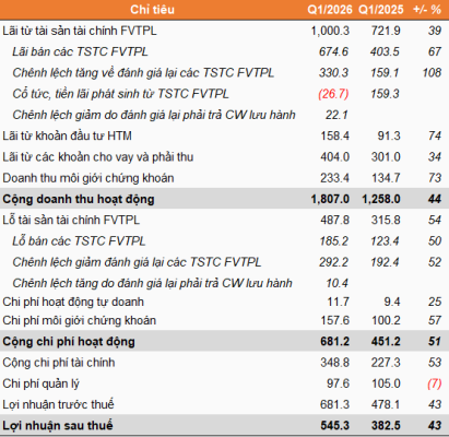 Lãi ròng VNDIRECT tăng 43% trong quý 1