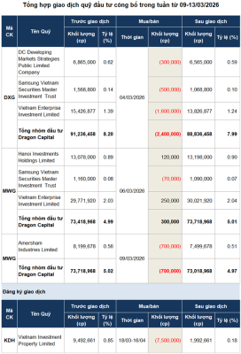 Tuần qua (09-13/03/2026), giao dịch của các quỹ đầu tư tiếp tục cho thấy xu hướng bán ra vẫn chiếm ưu thế so với chiều mua vào....