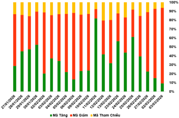 Phiên 03/03 ghi nhận áp lực bán áp đảo từ dòng tiền tổ chức, với tổng giá trị bán ròng của khối ngoại và tự doanh lên tới gần 1,000...
