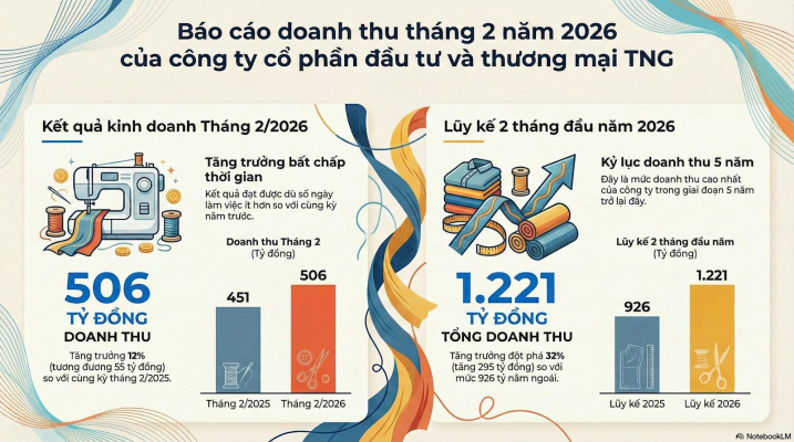 Doanh thu 2 tháng đầu năm tăng 32% so với cùng kỳ, trở thành động lực chính thúc đẩy cổ phiếu TNG tiến sát vùng đỉnh năm 2022....