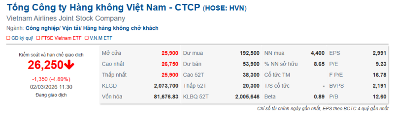 Cổ phiếu các hãng hàng không Việt Nam giảm mạnh trong phiên 02/03, cùng xu hướng chung của ngành hàng không châu Á khi cuộc xung đột ở Iran đẩy...