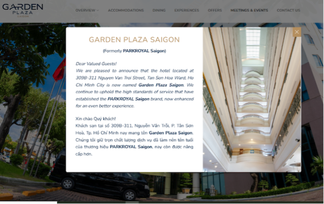 Khách sạn 4 sao tại số 309B-311 Nguyễn Văn Trỗi, TPHCM chính thức đổi tên từ PARKROYAL Saigon thành Garden Plaza Saigon từ nửa cuối năm 2025. Thông tin trên...