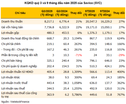 Lợi nhuận quý 3/2025 của CTCP Dịch vụ Tổng hợp Sài Gòn (Savico, HOSE: SVC) đạt đỉnh cao nhất lịch sử, gấp nhiều lần kết quả các năm trước, nhờ...