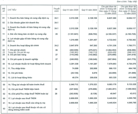 Nhờ ghi nhận khoản doanh thu tài chính đột biến, lãi ròng của CTCP Vincom Retail (HOSE: VRE) trong quý 4/2025 gấp 2.4 lần so với cùng kỳ....