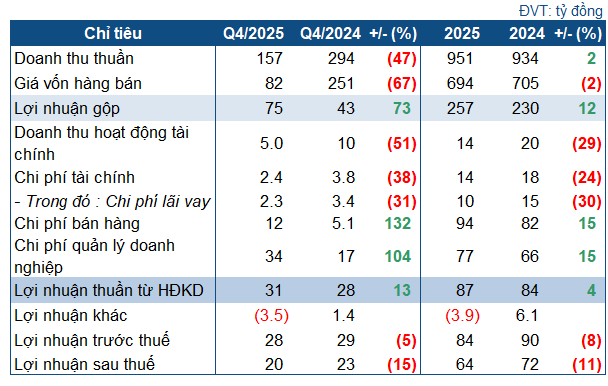 CTCP Dược phẩm Trung ương VIDIPHA (HOSE: VDP) công bố kết quả kinh doanh quý 4/2025 với doanh thu giảm mạnh, các chi phí tăng cao khiến lãi đi lùi,...