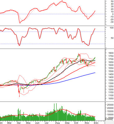 VN-Index tiếp tục đà tăng và bám vào Upper Band của Bollinger Bands trong quá trình bung nén của dải này. Trong khi đó, HNX-Index giằng co mạnh khi test...