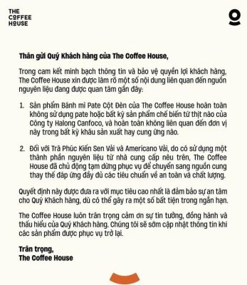 Sau Highlands Coffee, một chuỗi café nổi tiếng khác là The Coffee House cũng ra thông báo khẳng định không sử dụng pate của CTCP Đồ hộp Hạ Long (Halong...