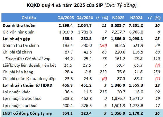 Dù không tăng trưởng bứt phá, SIP vẫn khép lại năm 2025 với kết quả kinh doanh cao kỷ lục, nhờ mảng tiện ích và khu công nghiệp tăng ổn...