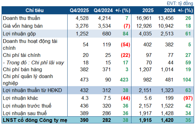 Hòa Phát (HPG) báo lãi sau thuế năm 2025 đạt hơn 15.500 tỷ đồng, tăng 29% so với năm 2024