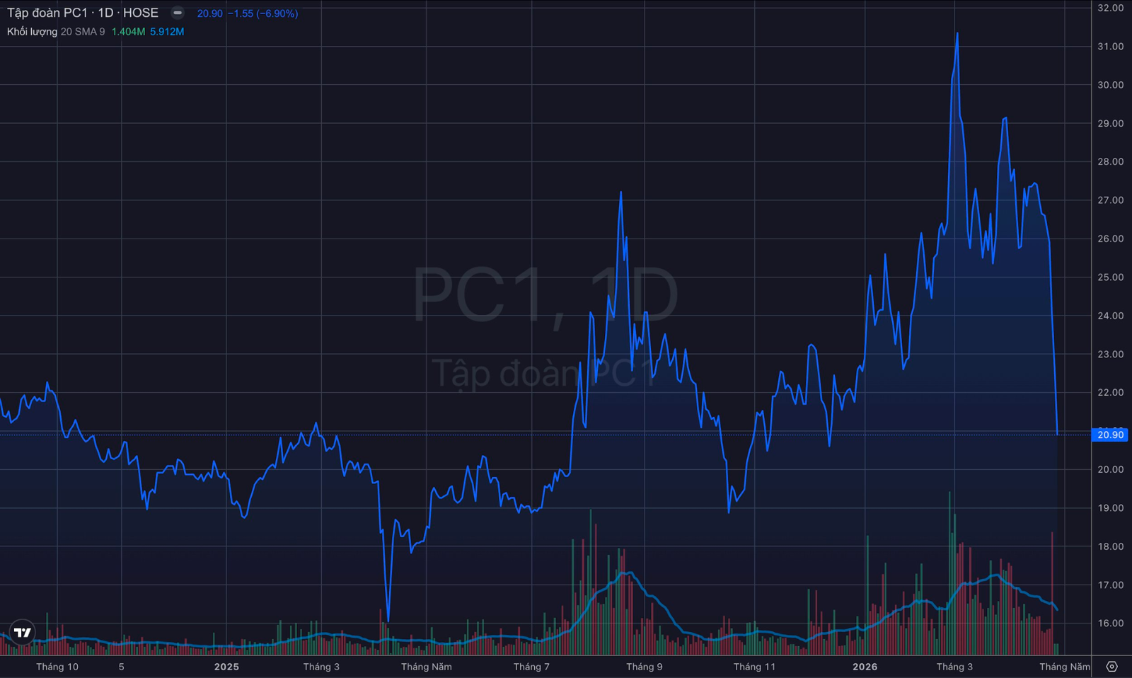 Dù vậy, trên thị trường, cổ phiếu PC1 ghi nhận diễn biến không thực sự khả quan trong thời gian qua dưới một số thông tin tiêu cực lan truyền chưa được xác thực. Áp lực bán mạnh đẩy thị giá giảm liên tục trong 9 phiên gần nhất, trong đó 3 phiên 23,24,28/4 đều giảm kịch sàn. Hiện PC1 rơi về mức 20.900 đồng/cp.