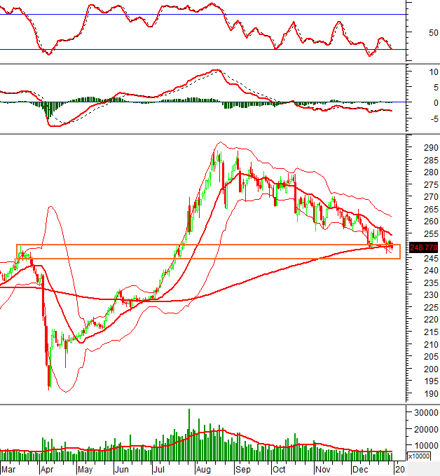 Đường Middle của Bollinger Bands sẽ tiếp tục đóng vai trò kháng cự mạnh trong thời gian tới. Mặt khác, các đỉnh mới và đáy mới thấp hơn (Lower High, Lower Low) xuất hiện liên tiếp cho thấy rủi ro hình thành xu hướng giảm trong ngắn hạn.