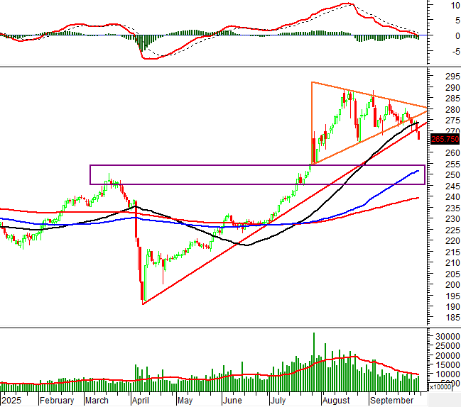 Hiện tại, chỉ số tiếp tục suy yếu sau khi phá vỡ cạnh dưới của mẫu hình Triangle. Nếu các tín hiệu kỹ thuật tiếp tục kém sắc và nhịp điều chỉnh tiếp tục diễn ra thì vùng đỉnh cũ bị phá vỡ tháng 03/2025 (tương đương vùng 245-254 điểm) sẽ là hỗ trợ tốt cho HNX-Index.