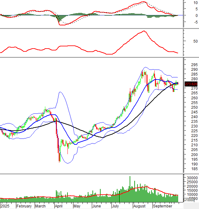 Trong phiên giao dịch ngày 10/10/2025, HNX-Index giảm điểm nhẹ đồng thời xuất hiện mẫu hình nến thân nhỏ và đang kiểm tra lại đường SMA 50 ngày cho thấy tâm lý khá phân vân của nhà đầu tư.