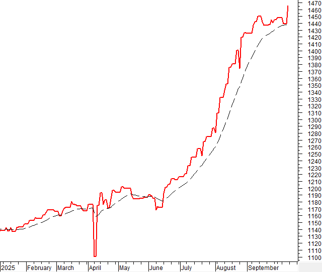 Hiện tại, chỉ số đã lập đỉnh cao nhất lịch sử và tiếp tục bám sát dải trên (Upper Band) của Bollinger Bands trong bối cảnh chỉ báo MACD tiếp tục hướng đi lên sau khi cho tín hiệu mua. Điều này cho thấy triển vọng tích cực trong ngắn hạn vẫn được duy trì.