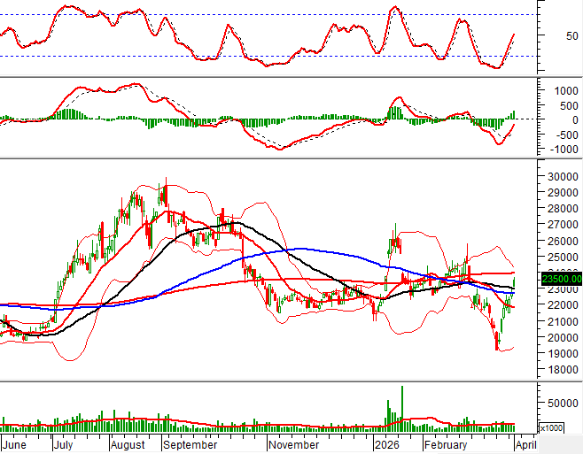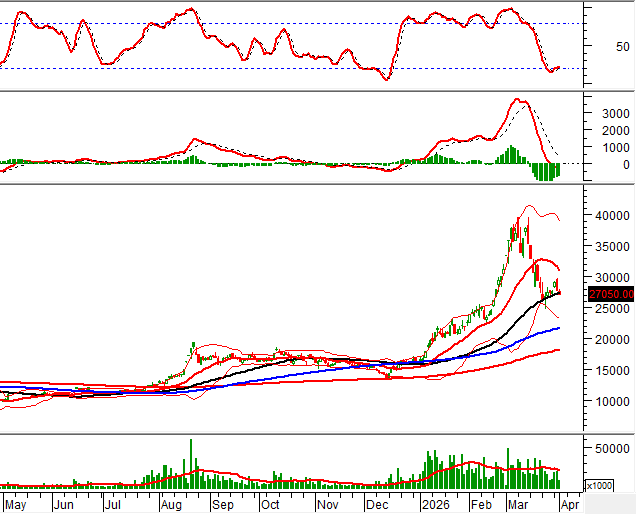 Hiện giá cổ phiếu này đang được nâng đỡ bởi đường SMA 50 ngày (tương đương vùng 26,200-27,200). Đây là ngưỡng hỗ trợ quan trọng sẽ quyết định xu hướng giá BSR trong thời gian tới.