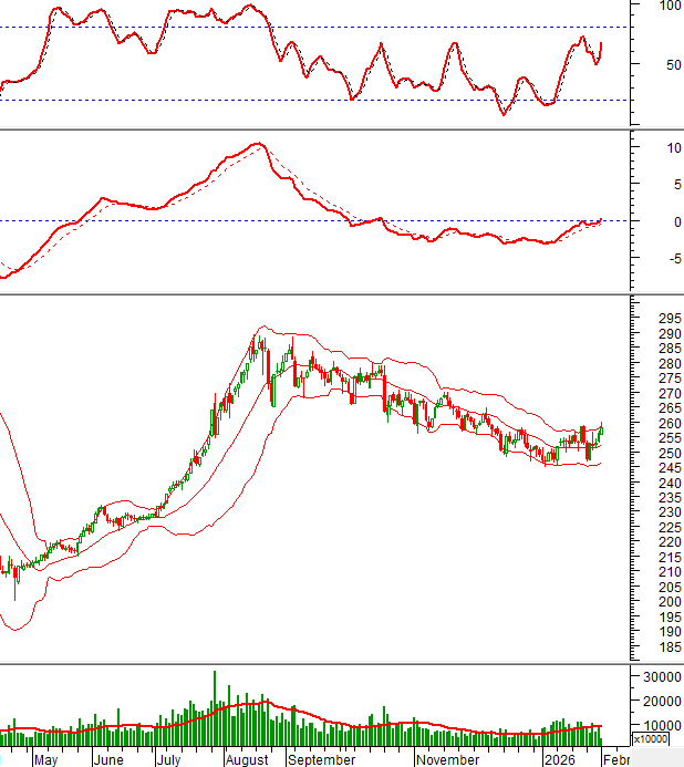 Đáy cũ tháng 01/2026 (tương đương vùng 244-250 điểm) đã trụ vững và hỗ trợ tốt cho chỉ số. Mặt khác, chỉ báo MACD đã vượt ngưỡng 0 và chỉ báo Stochastic Oscillator đã cho tín hiệu mua trở lại.