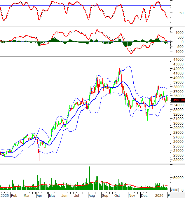 Trong phiên giao dịch sáng ngày 02/02/2026, giá cổ phiếu TCB đảo chiều giảm và tiếp tục nằm dưới đường Middle của Bollinger Bands cho thấy tâm lý không mấy lạc quan của nhà đầu tư.