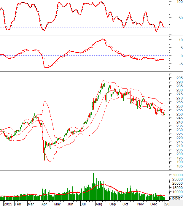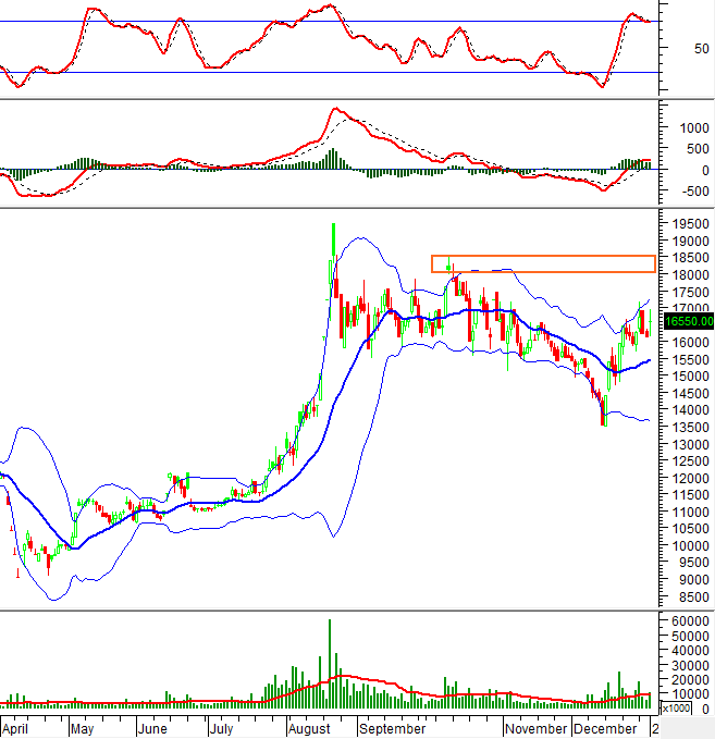 Khối lượng giao dịch ở mức thấp nên chỉ số khó có thể vượt qua đường Middle của Bollinger Bands trong ngắn hạn.