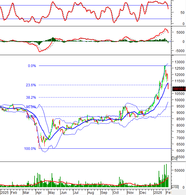 Nếu tình hình vẫn không có sự cải thiện trong các phiên tới và xu hướng giảm ngắn hạn kéo dài thì ngưỡng Fibonacci Retracement 38.2% (tương đương vùng 100,000-103,000) sẽ đóng vai trò là hỗ trợ cho cổ phiếu này.
