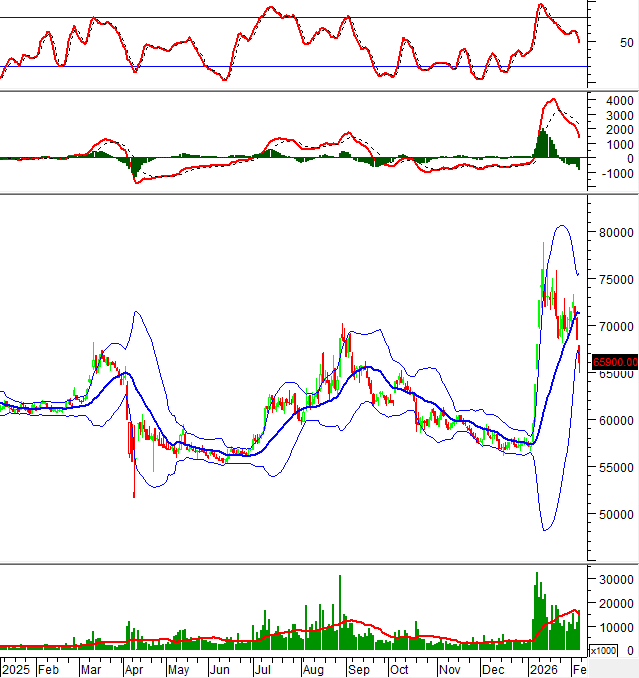Trong phiên giao dịch sáng ngày 06/02/2026, VN-Index tiếp tục quá trình điều chỉnh và bám vào Lower Band của Bollinger Bands.