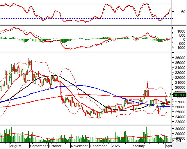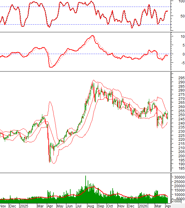Trong phiên giao dịch sáng ngày 08/04/2026, HNX-Index cũng đảo chiều mạnh và vượt qua đường Middle của Bollinger Bands.