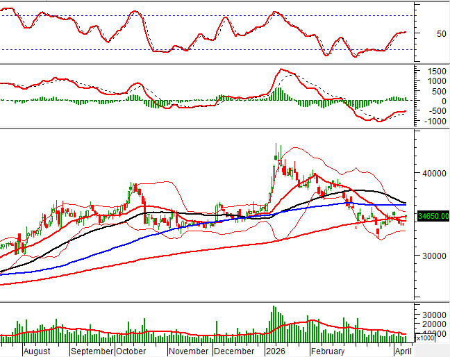 Hiện giá đang kiểm tra lại đường SMA 200 ngày (tương đương vùng 34,200-34,700). Phản ứng của giá tại vùng này sẽ quyết định xu hướng tiếp theo của cổ phiếu trong các phiên tới.