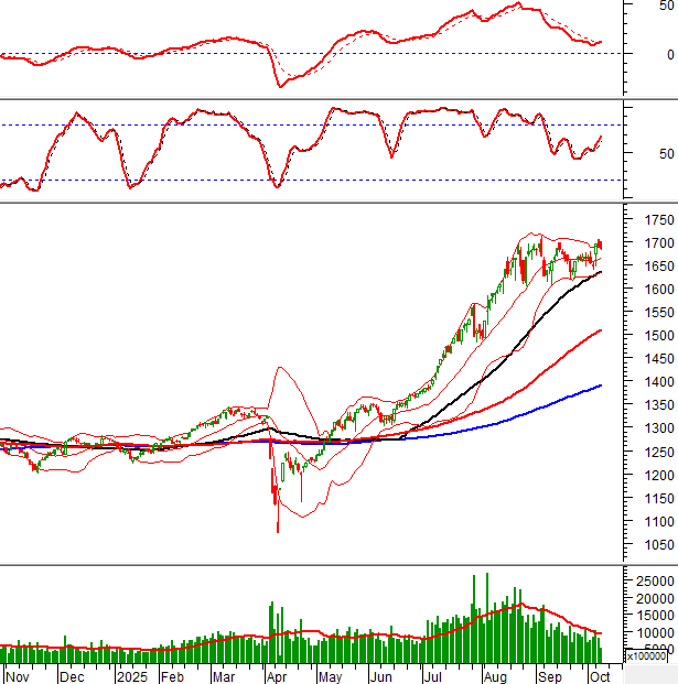 Trong phiên giao dịch sáng ngày 08/10/2025, VN-Index tiếp tục giằng co khi test lại đỉnh cũ tháng 09/2025 (tương đương vùng 1,700-1,711 điểm).