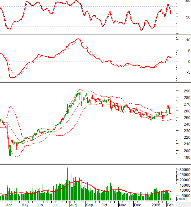 Trong phiên giao dịch sáng ngày 10/02/2026, HNX-Index tiếp tục test đường Middle của Bollinger Bands.