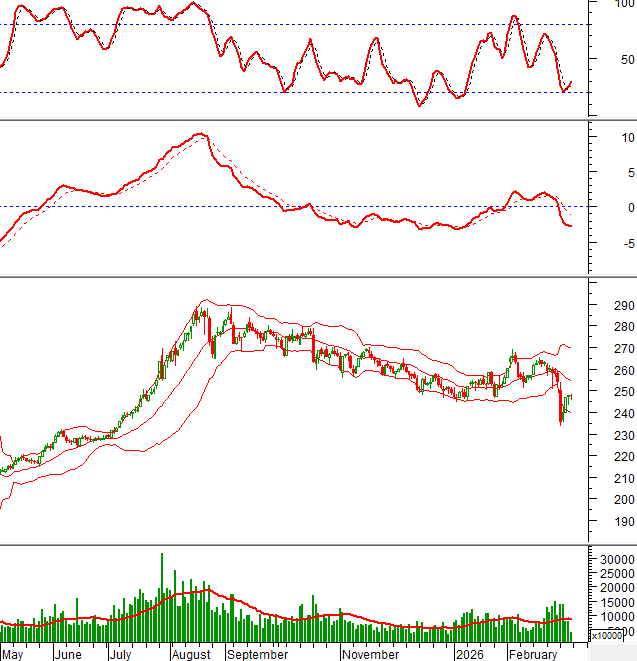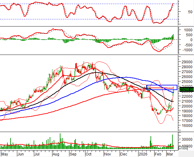 Hiện giá cổ phiếu VCG đang test lại đỉnh cũ tháng 01/2026 (tương đương vùng 23,200-24,200) trong khi chỉ báo MACD tiếp tục tăng và vượt lên mức 0. Nếu các tín hiệu tích cực vẫn được duy trì thì triển vọng phục hồi sẽ được củng cố thêm.