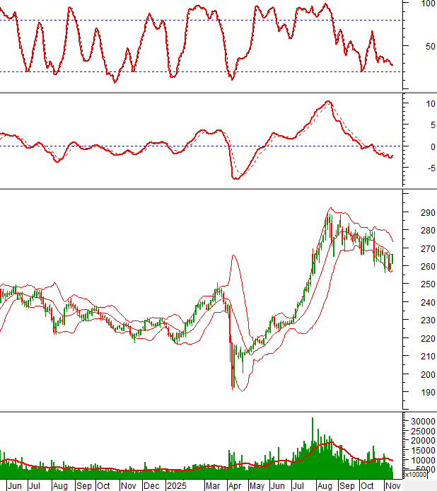 Trong phiên giao dịch sáng ngày 13/11/2025, VN-Index hồi phục nhẹ với cây nến có thân nến nhỏ và chỉ báo Stochastic Oscillator cho tín hiệu mua trở lại.