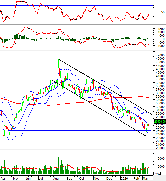 Trong phiên sáng 16/03/2026, giá cổ phiếu chuẩn bị tăng phiên thứ 4 liên tiếp kèm theo khối lượng dự kiến vượt mức trung bình khi kết thúc phiên cho thấy nhà đầu tư đã bớt bi quan.