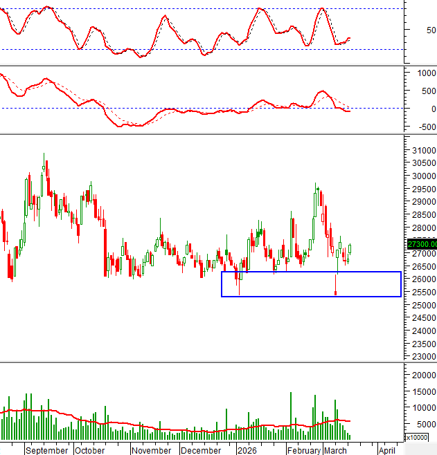 Đáy cũ tháng 01/2026 đã trụ vững trong đợt điều chỉnh đầu tháng 03/2026 và được kỳ vọng sẽ tiếp tục hỗ trợ hiệu quả cho giá.