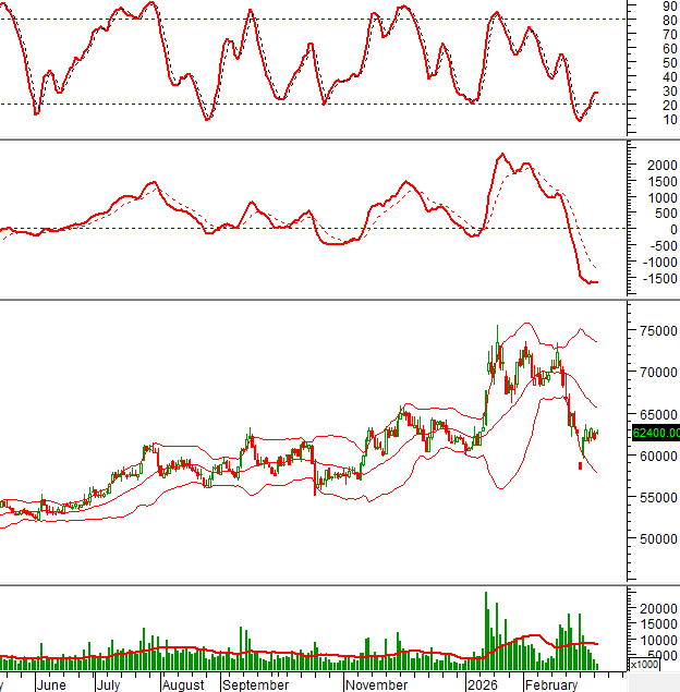 Khối lượng giao dịch cần vượt qua mức trung bình 20 ngày trong thời gian tới để xác nhận đà phục hồi. Việc mua vào khi giá về vùng 58,000-62,000 được ủng hộ.