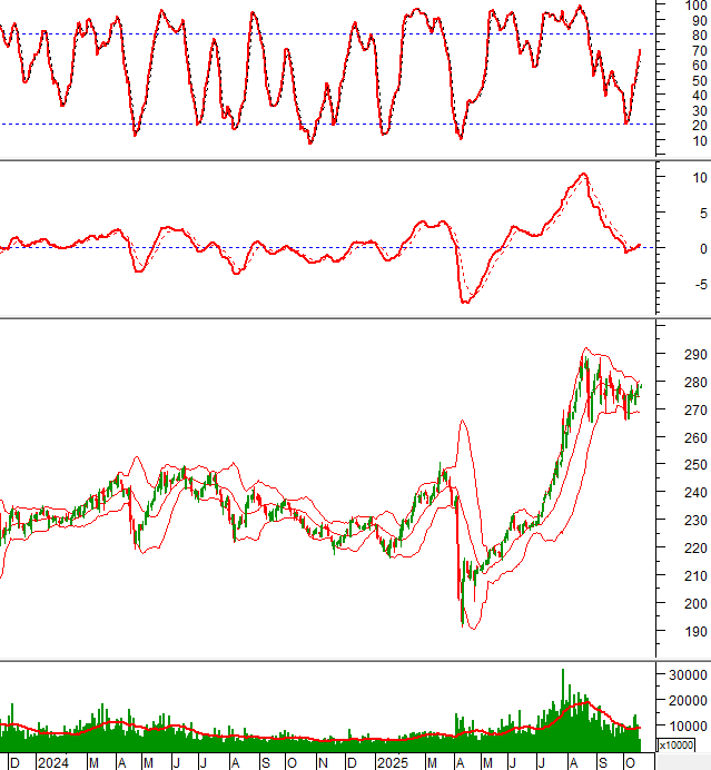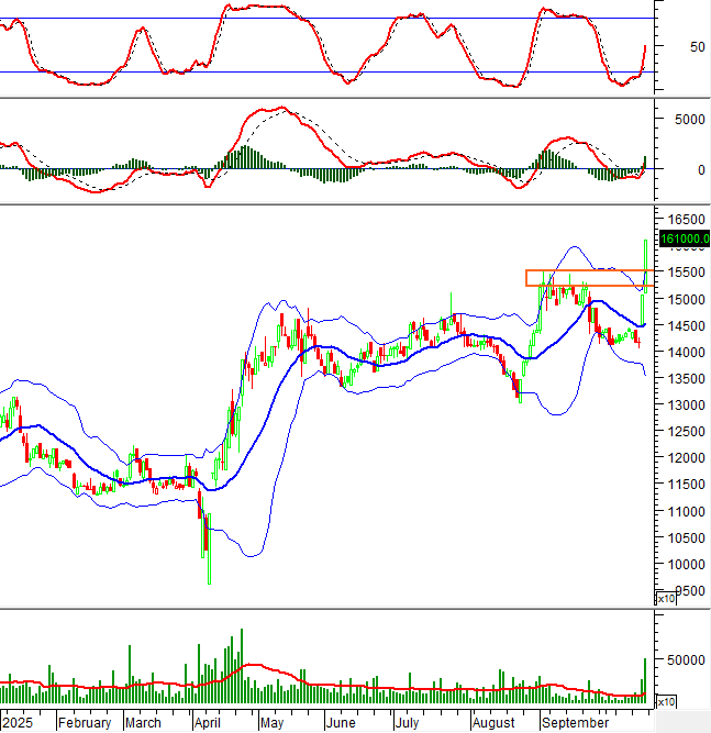 Chỉ báo MACD đã cho tín hiệu mua trở lại và cắt lên trên mức 0 trong bối cảnh giá cổ phiếu này đã vượt lên trên đỉnh cũ tháng 09/2025 (tương đương vùng 152,000-155,000). Nếu các tín hiệu kỹ thuật tích cực và giá BMP được duy trì tốt trên vùng này thì xu hướng tăng trung hạn sẽ được củng cố thêm.