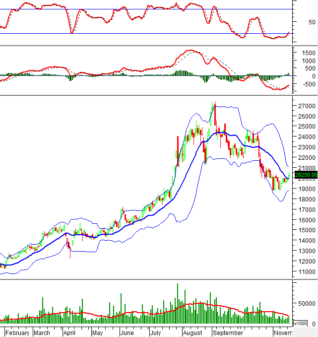 Hiện tại, giá của VND đã cắt lên đường Middle của Bollinger Bands trong bối cảnh chỉ báo Stochastic Oscillator tiếp tục tăng và vượt lên khỏi vùng quá bán (Oversold) sau khi cho tín hiệu mua. Nếu tín hiệu kỹ thuật tích cực tiếp tục duy trì thì đà phục hồi ngắn hạn sẽ bền vững hơn.