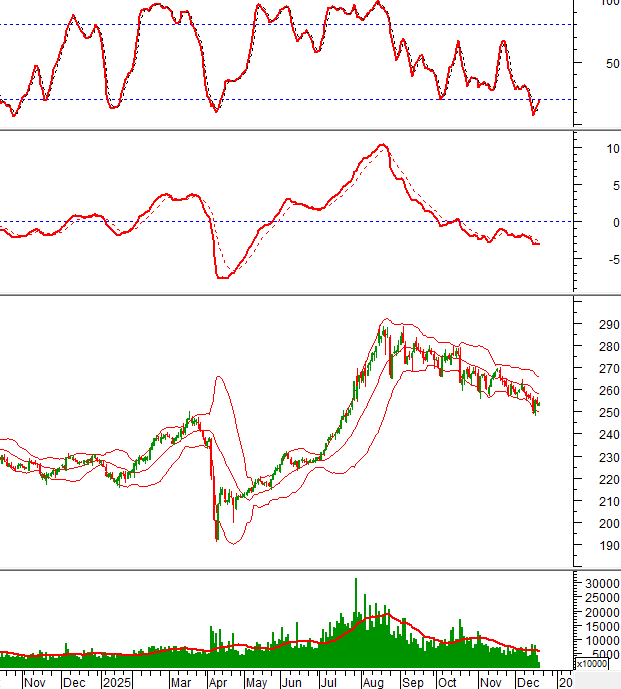 Chỉ báo MACD tiếp tục đi xuống và đang ở sát mức 0 gây lo ngại về nguy cơ rơi xuống dưới ngưỡng này trong ngắn hạn.