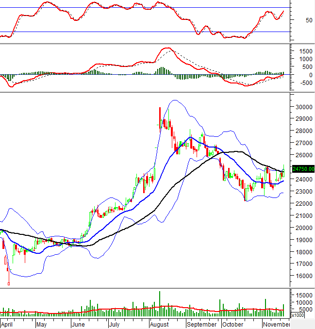 Tuy nhiên, chỉ số đã phá vỡ hoàn toàn đường Middle của Bollinger Bands và Stochastic Oscillator, MACD cùng cho tín hiệu mua trở lại nên triển vọng ngắn hạn khá tích cực.