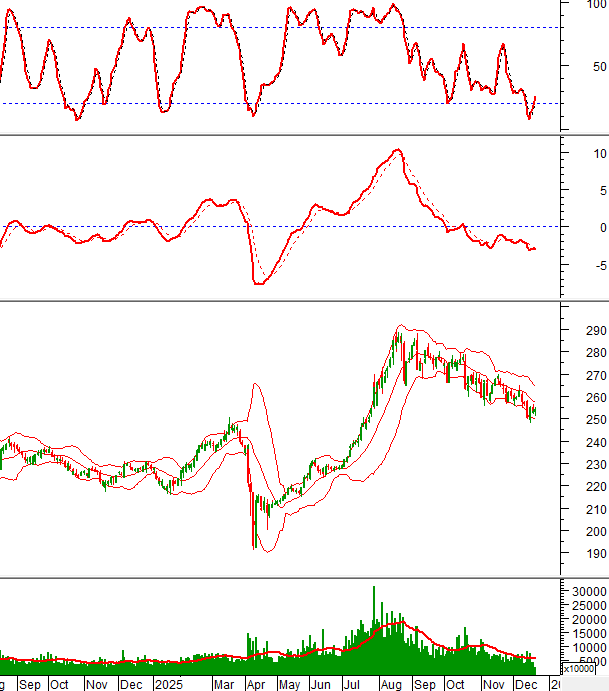 Hiện tại, chỉ báo MACD đang dần thu hẹp khoảng cách với đường Signal. Nếu tín hiệu mua xuất hiện trở lại và giá của VRE vượt lên trên đường Middle của Bollinger Bands thì triển vọng phục hồi sẽ bền vững hơn.