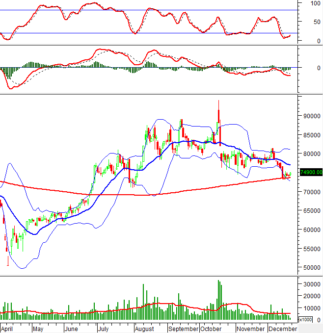 Hiện tại, giá của MSN đang nằm dưới đường Middle của Bollinger Bands trong khi chỉ báo MACD vẫn đang cho tín hiệu bán và nằm dưới mức 0. Điều này cho thấy triển vọng vẫn còn khá tiêu cực.